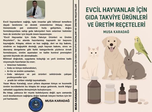 EVCİL HAYVANLAR İÇİN GIDA TAKVİYE ÜRÜNLERİ VE ÜRETİM REÇETELERİ ![]() ![]() İçindekiler ÖNSÖZ. 10 Eklem Sağlığı Destekleyici Takviye (Glukozamin + Kondroitin) 11 Tüy Ve Deri Sağlığı Destekleyici Takviye (Likit Veya Softgel) 12 Bağışıklık Sistemi Destekleyici Takviye. 13 Sindirim Sistemi Destekleyici Probiyotik Takviye. 14 Yaşlı Hayvanlar İçin Multivitamin Takviyesi 15 Evcil Hayvanlar İçin Tüy ve Deri Sağlığı Destekleyici Likit Gıda Takviyesi 16 Tüy & Deri Likit (Omega-3 + Biotin) 17 Probiyotik + Prebiyotik Toz (Sindirim Dengeleyici) 18 Eklem Desteği Tablet (Glukozamin + Kondroitin) 19 Omega Softchew (Tüy & Deri - Çiğnenebilir) 20 Yaşlılar için Multivitamin Toz. 21 Nefes Ferahlatıcı Sprey (Ağız Bakımı) 22 İdrar Yolu Destekçisi (Cranberry + D-Mannose) 23 Karaciğer Destekleyici (Silymarin + SAMe precursor) 24 Sakinleştirici Takviye (L-theanine + Melatonin düşük doz) 25 Göz Sağlığı (Taurine + Lutein) — Özel Kedi Formu. 26 Kilo Yönetimi / Metabolik Destek (L-Carnitine) 27 Kolajen & Hyaluronik Asit Tozu (Eklem + Cilt) 28 Elektrolit & Rehydratasyon Solüsyonu (Oral) 29 Anti-tüy Yumağı (Hairball Remedy - Kedi) 30 Vitamin C Chew (Antioksidan) 31 Diş Taşı Önleyici Toz (Water Additive dry mix) 32 Antioksidan Complex (CoQ10 + Vitamin E) 33 Probiyotik Pasta (veya Ödül Ürünü) 34 Kulak Temizleyici Solüsyon (Topical) 35 Yara İyileştirici Spray (Antiseptik + Aloe) 36 Parlak Kürk Serum (Topikal) 37 Bağışıklık Güçlendirici (Beta-Glucan + Echinacea) 38 Kemik & Diş Desteği (Kalsiyum + D3) 39 Deri Alerji Destekleyici (Quercetin + Omega) 40 Enerji & Performans (Atletik Köpekler) 41 Anti-parazit (Doğal, Topikal repelent baz) 42 EKLEM VE KAS SAĞLIĞI DESTEKLEYİCİ ÜRÜNLER. 43 Glukozamin + Kondroitin Tablet Takviyesi 43 MSM + Hyaluronic Acid Toz Takviyesi 44 Collagen + Omega-3 Likit Takviyesi 45 Joint Guard Gel (Topikal Jel) 46 Protein + Taurine Takviyesi (Toz) 47 DERİ VE TÜY SAĞLIĞI DESTEKLEYİCİ ÜRÜNLER. 48 6Omega-3 + Biotin Likit Takviyesi 48 Brewer’s Yeast + Zinc Toz Takviyesi 49 Biotin + Omega-6 Softgel 50 Vitamin H + Zinc Chew Tablet (Çiğneme Tableti) 51 Deri Onarıcı Vitamin Spreyi 52 EKLEM VE KAS SAĞLIĞI DESTEKLEYİCİ ÜRÜNLER. 53 Glukozamin + Kondroitin Tablet Takviyesi 53 MSM + Hyaluronic Acid Toz Takviyesi 54 Collagen + Omega-3 Likit Takviyesi 55 Joint Guard Gel (Topikal Jel) 56 Protein + Taurine Takviyesi (Toz) 57 DERİ VE TÜY SAĞLIĞI DESTEKLEYİCİ ÜRÜNLER. 58 Omega-3 + Biotin Likit Takviyesi 58 Brewer’s Yeast + Zinc Toz Takviyesi 59 Biotin + Omega-6 Softgel 60 Vitamin H + Zinc Chew Tablet (Çiğneme Tableti) 61 Deri Onarıcı Vitamin Spreyi 62 SİNDİRİM SİSTEMİ DESTEKLEYİCİ ÜRÜNLER. 63 Probiyotik Toz Takviyesi 63 Prebiyotik + Digestive Enzyme Tablet 64 Fermentasyon Destekli Likit Takviye. 65 Karaciğer Dostu Toz Takviye. 66 Yavru Sindirim Destek Tozu. 67 BAĞIŞIKLIK GÜÇLENDİRİCİ ÜRÜNLER. 68 Echinacea + Vitamin C Toz Takviye. 68 Beta-Glucan + Multivitamin Tablet 69 Propolis Likit Takviye. 70 Selenium + Zinc Mineral Takviye. 71 Immune Boost Chewable Tablet (Çiğneme Tableti) 72 YAŞLI BAKIM ÜRÜNLERİ. 73 Anti-Oxidant + CoQ10 Likit Takviye. 73 Joint & Heart Soft Chew.. 74 Anti-Aging Vitamin Tozu. 75 Memory Support Likit Takviye. 76 Antioxidant Chew Tablet 77 STRES VE DAVRANIŞ DESTEKLEYİCİ ÜRÜNLER. 78 L-Theanine + Chamomile Likit Takviye. 78 Calming Chew Tablet 79 CBD Oil + Relaxing Blend. 80 Herbal Stress Support Mix (Toz) 81 Calming Spray. 82 DİŞ VE AĞIZ SAĞLIĞI DESTEKLEYİCİ ÜRÜNLER. 83 Dental Chew Tablet 83 Oral Spray (Antibacterial) 84 Dental Gel 85 Chewing Stick Coating. 86 Oral Rinse Tablet 87 ENERJİ VE VİTAMİN TAKVİYELERİ 88 Energy Boost Toz Takviye. 88 Liquid Multivitamin Mix. 89 Puppy Growth Powder 90 Kitten Energy Chew.. 91 Active Dog Liquid Supplement 92 MULTİVİTAMİN VE MİNERAL KOMPLEKSLERİ 93 Complete Vitamin & Mineral Powder 93 Puppy Growth Multivitamin Tablet 94 Kitten Daily Multivitamin Powder 95 Adult Dog Complete Mineral Mix. 96 Senior Cat Vitamin & Mineral Chew.. 97 ÖZEL YAVRU VE KÜÇÜK CİNS TAKVİYELERİ 98 Yavru Köpek Başlangıç Tozu. 98 Yavru Kedi Büyüme Sıvı Takviyesi 99 Yavru Köpek Bağışıklık Güçlendirici Çiğneme Maması 100 Yavru Kedi Sindirim Destek Tozu. 101 Yavru Köpek Çok Enerjili Sıvı 102 EKLEM VE KAS SAĞLIĞI DESTEKLEYİCİ ÜRÜNLER. 103 Glukozamin + Kolajen Çiğneme. 103 Omega-3 + Eklem Sıvı Takviyesi 104 MSM + Kalsiyum Tozu. 105 Kolajen + Hyaluronik Asit Çiğneme. 106 Glukozamin + C Vitamini Tozu. 107 Eklem Destek Sıvısı 108 Kolajen + Taurin Tozu. 109 Omega-3 + MSM Çiğnenebilir 110 Glukozamin + Kondroitin Sıvısı 111 Eklem ve Kas Multivitamin Tozu. 112 DERİ VE TÜY SAĞLIĞI DESTEKLEYİCİ ÜRÜNLER. 113 Omega-3 + Biotin Çiğneme. 113 Linseed Oil + Vitamin E Liquid. 114 Bira Mayası + Çinko Tozu. 115 Biyotin + Omega-6 Yumuşak Kapsül 116 H Vitamini + Çinko Çiğneme Tableti 117 Deri Onarıcı Vitamin Spray. 118 Omega-3 + Kolajen Sıvı 119 Biyotin + Kolajen Çiğneme Tableti 120 Deri ve Tüy Tozu. 121 Omega-3 + E Vitamini Yumuşak Kapsül 122 SİNDİRİM SİSTEMİ DESTEKLEYİCİ ÜRÜNLER. 123 Probiyotik Toz. 123 Prebiyotik + Sindirim Enzim Karışımı 124 Probiyotik Sıvı Takviyesi 125 Sindirim Desteği Çiğnenebilir Tablet 126 Bitkisel Sindirim Tozu. 127 BAĞIŞIKLIK GÜÇLENDİRİCİ ÜRÜNLER. 128 Ekinezya + C Vitamini Tozu. 128 Beta-Glucan + Multivitamin Tablet 129 Propolis Sıvı Takviyesi 130 Selenyum + Çinko Mineral Karışımı 131 Bağışıklık Sistemini Güçlendiren Çiğnenebilir Tablet 132 YAŞLI BAKIM ÜRÜNLERİ 133 Antioksidan + CoQ10 Sıvı 133 Eklem ve Kalp Yumuşak Çiğneme. 134 Yaşlanma Karşıtı Vitamin Tozu. 135 Bellek Destek Sıvısı 136 Antioksidan Çiğneme Tableti 137 STRES VE DAVRANIŞ DESTEKLEYİCİ ÜRÜNLER. 138 Teanin + Papatya Sıvısı 138 Sakinleştirici Çiğneme Tableti 139 CBD Yağı + Rahatlatıcı Karışım.. 140 