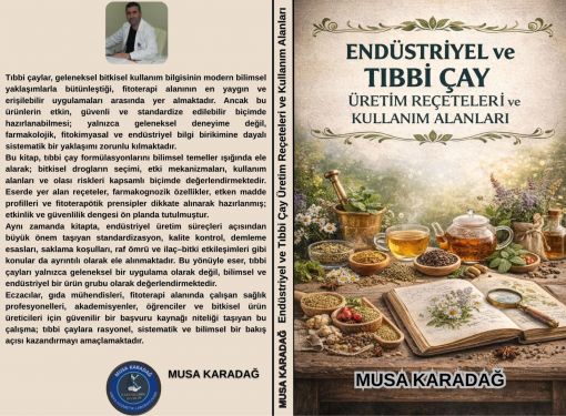 Endüstriyel ve Tıbbi Çay Üretim Reçeteleri ve Kullanım Alanları ![]() ![]() Endüstriyel ve Tıbbi Çay Üretim Reçeteleri ve Kullanım Alanları İçindekiler ÖN SÖZ.. 4 Tıbbi Çaylar Hakkında Temel Bilgiler 6 1. Tıbbi Çay Nedir?. 6 2. Tıbbi Çayların Fitoterapideki Yeri 6 3. Kullanılan Bitkisel Droglar. 6 4. Etki Mekanizmaları 6 5. Yaygın Kullanım Alanları 7 6. Hazırlama (Demleme) Esasları 7 7. Güvenlilik ve Yan Etkiler. 7 8. İlaç–Bitki Etkileşimleri 8 9. Saklama ve Raf Ömrü. 8 10. Akademik ve Endüstriyel Önemi 8 Tıbbi Çayların Kullanımında Dikkat Edilmesi Gereken Hususlar 9 Tıbbi Çay Formülasyonlarının Farmakolojik Temelleri ve Endüstriyel Üretim Yaklaşımları 12 Endüstriyel ve Tıbbi Çay Karışımlarına Ait Akademik Değerlendirme Tablosu 15 Sindirim Destekleyici Tıbbi Çay. 18 Soğuk Algınlığı & Bağışıklık Destek Çayı 19 Rahatlatıcı & Uyku Destek Çayı 20 İdrar Yolu & Ödem Destek Çayı 21 Kadınlara Yönelik Regl Destek Çayı 22 Gaz Giderici Tıbbi Çay. 23 Mide Rahatlatıcı Tıbbi Çay. 24 Kabızlık Destek Çayı 25 İshal Destek Çayı 26 Safra Akışı Destek Çayı 27 Metabolizma Hızlandırıcı Çay. 28 Şişkinlik Karşıtı Çay. 29 Reflü Destek Çayı 30 İştah Açıcı Çay. 31 İştah Kapatıcı Çay. 32 Karaciğer Destek Çayı 33 Mide Bulantısı Çayı 35 Sindirim Enzim Destek Çayı 36 Grip Destekleyici Tıbbi Çay. 38 Boğaz Yumuşatıcı Çay. 39 Antiviral Destek Çayı 40 Terletici Soğuk Algınlığı Çayı 41 Antioksidan Bağışıklık Çayı 42 Öksürük Kesici Çay. 43 Sinüs Açıcı Çay. 44 Ateş Düşürücü Destek Çayı 45 Bağışıklık Tonik Çayı 46 Bronş Destek Çayı 47 Çocuklar İçin Soğuk Algınlığı Çayı 48 C Vitamini Destek Çayı 49 Kış Çayı (Koruyucu) 50 Akciğer Destek Çayı 51 Üst Solunum Yolu Destek Çayı 52 Uyku Destekleyici Tıbbi Çay. 53 Anksiyete Azaltıcı Çay. 54 Sinir Yatıştırıcı Çay. 55 Stres Azaltıcı Çay. 56 Gece Çayı 57 Odak ve Sakinlik Çayı 58 Duygudurum Destek Çayı 59 Migren Rahatlatıcı Çay. 60 Zihinsel Netlik Çayı 62 Huzur Çayı 63 Panik Destek Çayı 64 Konsantrasyon Destek Çayı 65 Sinir Sistemi Besleyici Çay. 66 Uykusuzluk Destek Çayı 67 Ödem Atıcı Tıbbi Çay. 68 Detoks Destek Çayı 69 Böbrek Destek Çayı 70 İdrar Yolu Destek Çayı 71 Arındırıcı (Temizleyici) Çay. 72 Selülit Destek Çayı 73 Su Tutulması Karşıtı Çay. 74 Karaciğer Detoks Çayı 75 Safra Akışı Destek Çayı 76 Hafif Diüretik Çay. 77 Metabolik Temizleme Çayı 78 Böbrek Taşı Destek Çayı 79 Lenfatik Sistem Destek Çayı 80 Gece Detoks Çayı 81 Yaz Detoksu Çayı 82 Regl Ağrısı Destekleyici Çay (Kadın) 83 PMS Destek Çayı (Kadın) 84 Menopoz Destek Çayı (Kadın) 85 Hormon Dengeleyici Çay (Kadın) 86 Emzirme Destek Çayı (Kadın) 87 Kadın Tonik Çayı 88 Erkek Güç & Enerji Çayı 89 Prostat Destek Çayı (Erkek) 90 Libido Destek Çayı (Kadın–Erkek) 91 Adet Düzensizliği Destek Çayı (Kadın) 92 Rahim Destek Çayı (Kadın) 93 Menstrual Detoks Çayı (Kadın) 94 Erkek Metabolizma Destek Çayı 95 Kemik & Mineral Destek Çayı (Kadın) 96 Demir Destek Çayı (Kadın–Erkek) 97 Cilt Detoks Çayı 98 Akne Destek Çayı 99 Antioksidan Cilt Çayı 100 Kolajen Destek Çayı 101 Egzama & Hassas Cilt Çayı 102 Saç – Tırnak Destek Çayı 103 Cilt Canlandırıcı Çay. 104 Yaşlanma Karşıtı Çay. 105 Genel Detoks & Cilt Arındırma Çayı 106 Cilt Lekeleri Destek Çayı 107 Bağ Dokusu Destek Çayı 108 Genel Tonik Çayı 109 Stres Kaynaklı Cilt Problemleri Çayı 110 Dolaşım & Cilt Besleyici Çay. 111 Cilt Nem Desteği Çayı 112 Genel Antioksidan Çayı 113 Cilt & Karaciğer Destek Çayı 114 Anti-inflamatuar Cilt Çayı 115 Genel Metabolik Sağlık Çayı 116 Cilt Temizleyici & Arındırıcı Çay. 117 Mineral & Vitamin Destek Çayı 118 Antioksidan Günlük Kullanım Çayı 119 Cilt Yorgunluğu Destek Çayı 120 Genel Sağlık & Bağışıklık Çayı 121 Günlük Wellness Çayı 122 Günlük Anti-Stres Çayı 123 Lenfatik Drenaj Destek Çayı 124 Cilt Yatıştırıcı Çay. 125 Güçlü Antioksidan Çayı 126 Alkali Denge Destek Çayı 127 Şehir Yorgunluğu Çayı 128 Cilt Canlandırıcı Çay. 129 Hafif Günlük Detoks Çayı 130 Anti-İnflamatuar Destek Çayı 131 Cilt & Sindirim Destek Çayı 132 Günlük Fit Wellness Çayı 133 Hücresel Antioksidan Çayı 134 Doku Yenileyici Çay. 135 Dolaşım & Cilt Çayı 136 Akşam Sakinleştirici Çay. 137 Anti-Glukasyon Destek Çayı 138 Cilt Kuruluğu Destek Çayı 139 Günlük Bağışıklık & Cilt Çayı 140 Bahar Arındırıcı Çayı 141 Karaciğer & Cilt Tonik Çayı 142 Anti-Alerjik Destek Çayı 143 Mineral Destek Çayı 144 Sabah Canlandırıcı Çay. 145 Hafif Termojenik Çay. 146 Anti-Stres Detoks Çayı 147 Gül Yaprağı Tek Drog Çayı 148 Hücresel Koruma Çayı 149 Cilt & Lenf Destek Çayı 150 Yumuşak Anti-İnflamatuar Çay. 151 Akşam Detoks-Light Çayı 152 Cilt Ton Eşitleyici Çay. 153 Anti-Yorgunluk Çayı 154 Günlük Yeşil Çay. 155 Cilt & Sindirim Dostu Çay. 156 Bitkisel Arındırıcı Çay. 157 Relax Wellness Çayı 158 Cilt Elastikiyet Destek Çayı 159 Anti-Stres Antioksidan Çayı 160 Cilt Temizleyici Çay. 161 Dolaşım Canlandırıcı Çay. 162 Hafif Günlük Wellness Çayı 163 Anti-Aging Light Çayı 164 Cilt & Bağırsak Detoks Çayı 165 Yumuşak Cilt Bakım Çayı 166 Günlük Anti-İnflamatuar Çay. 167 Canlandırıcı Tonik Çayı 168 Cilt & Mineral Dengesi Çayı 169 Akşam Wellness Çayı 170 Günlük Detoks & Cilt Çayı 171 Premium Günlük Sağlık Çayı 172 Kaynakça. 174